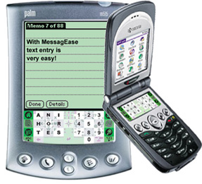 IF you have a PDA with virtual Graffiti, MessagEase creates a virtual keyboard right on the screen. PDAs like Cliés NR, NX and NZ series, Tungsten T5, Tungsten T3, Tapwave's Zodiac, or Garmin's iQue 3600 fit this bill quite nicely.
