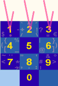 For example, to enter "(" drag left from anywhere on the 4 or