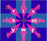 eight directions shown by that letter. For example, to enter "u"