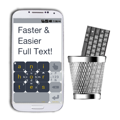 MessagEase is an innovative keyboard especially designed for touch screen devices. Unlike the QWERTY keyboard, which was made for ten fingers, MessagEase is optimized for one or two fingers.